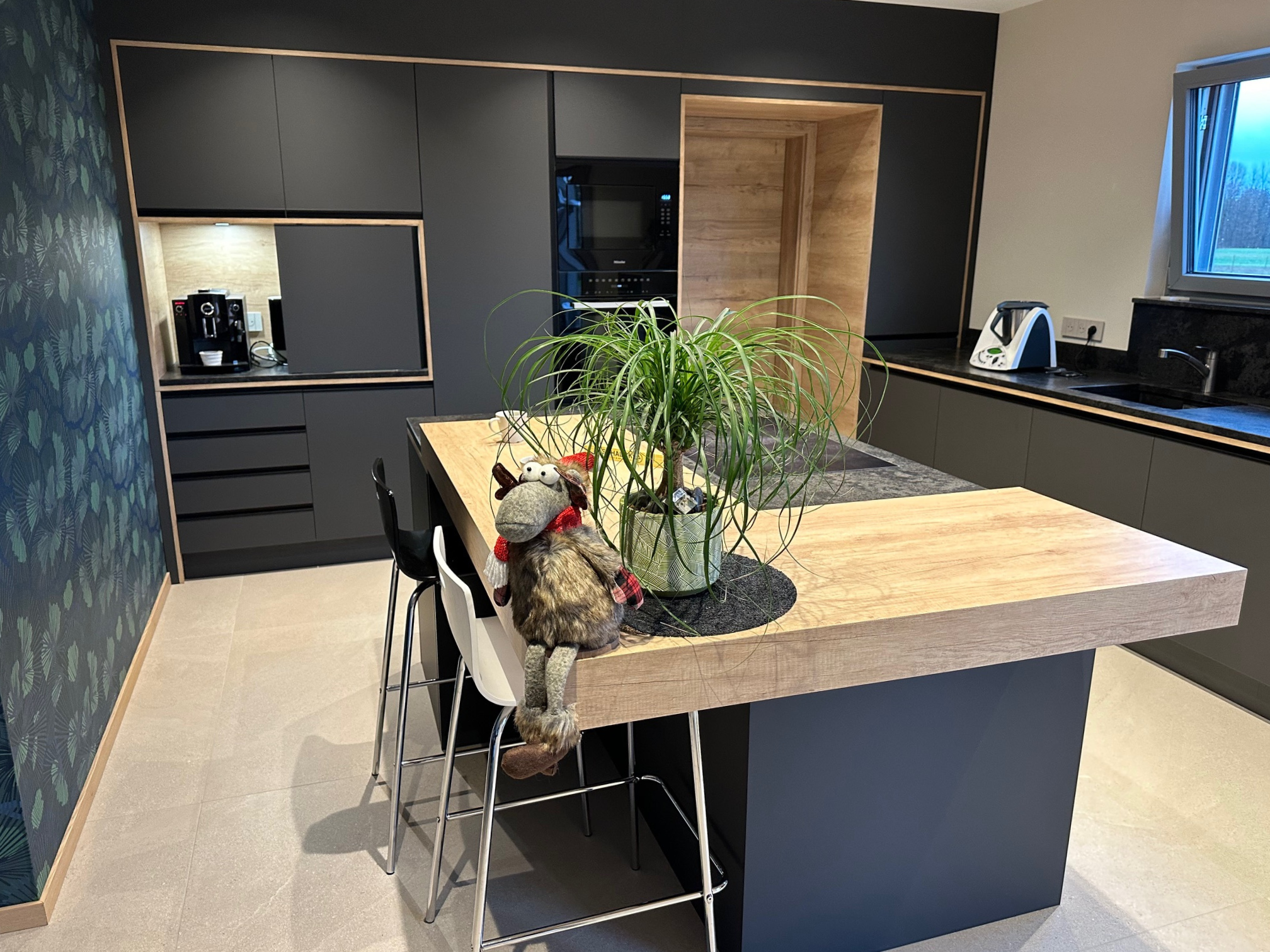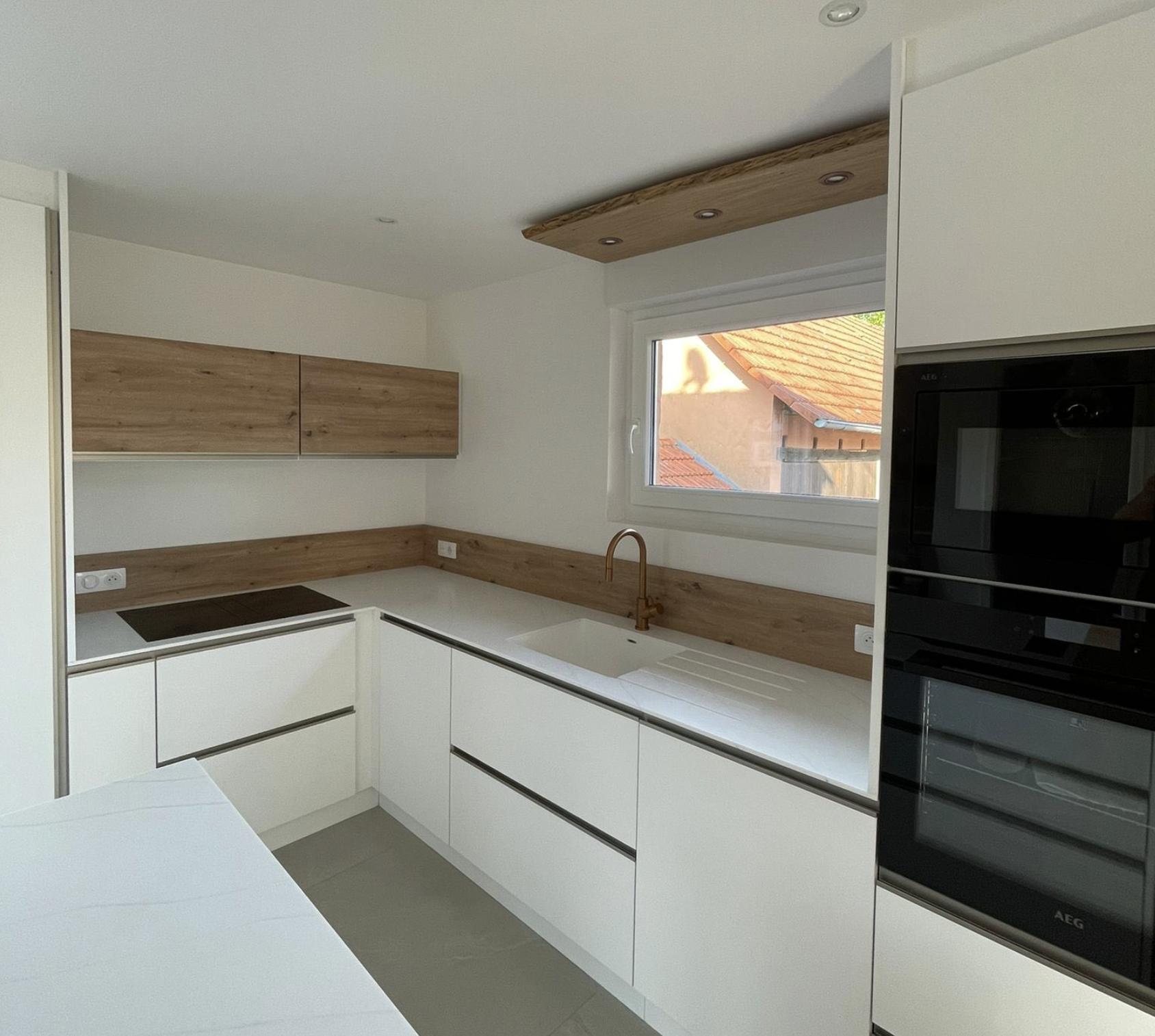 Oui, tous les équipements (électroménager, robinetterie, rangements) peuvent être intégrés dans la conception.